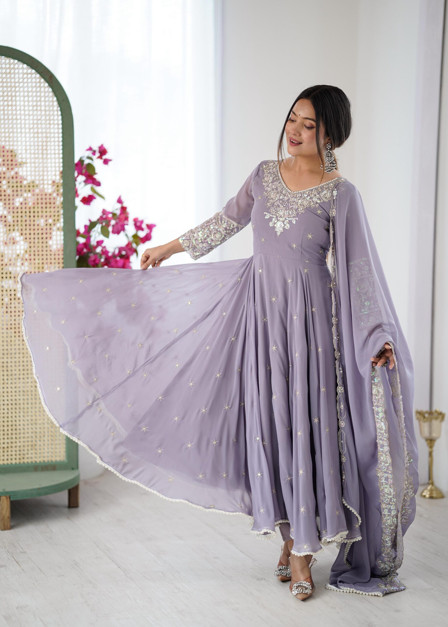 ✨ Lavender Luxe Embroidered Anarkali Set ✨