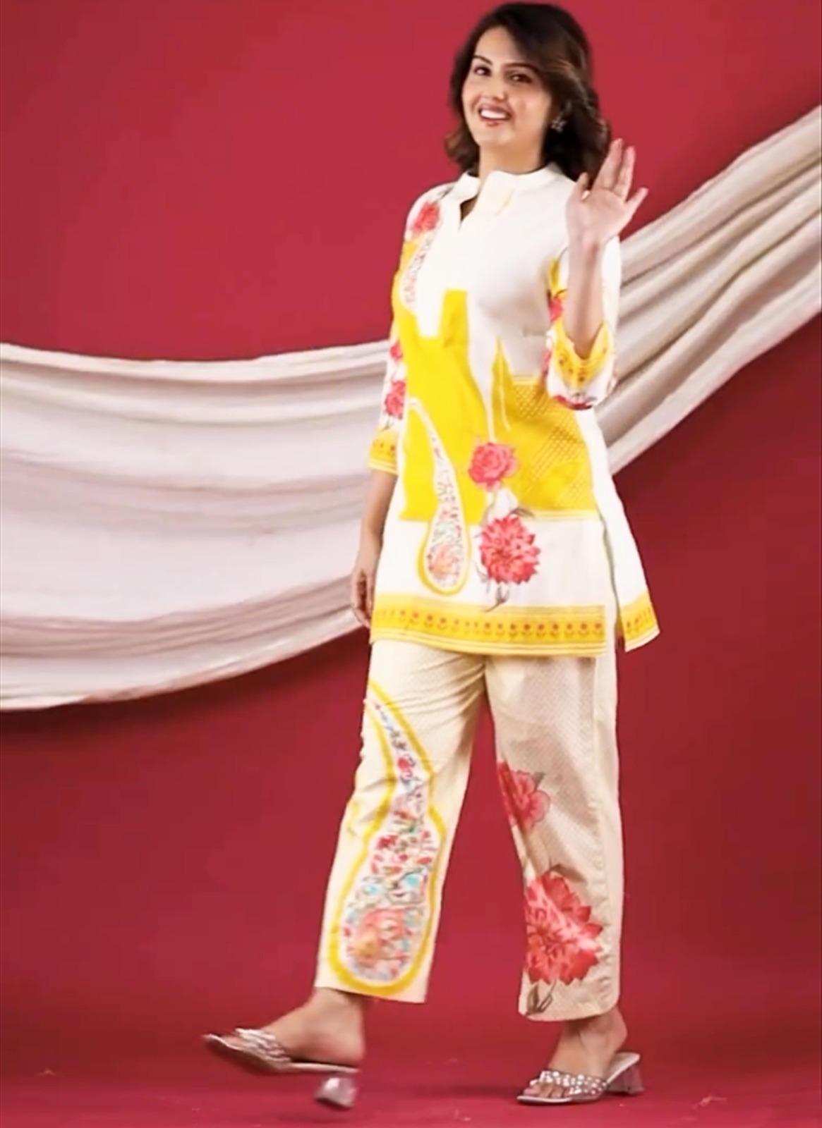 A fresh and stylish 2-piece co-ord set designed for effortless everyday elegance. Featuring a clean white base with refreshing lemon yellow tones, this outfit is perfect for a chic and minimal look. (Maha-20.03)