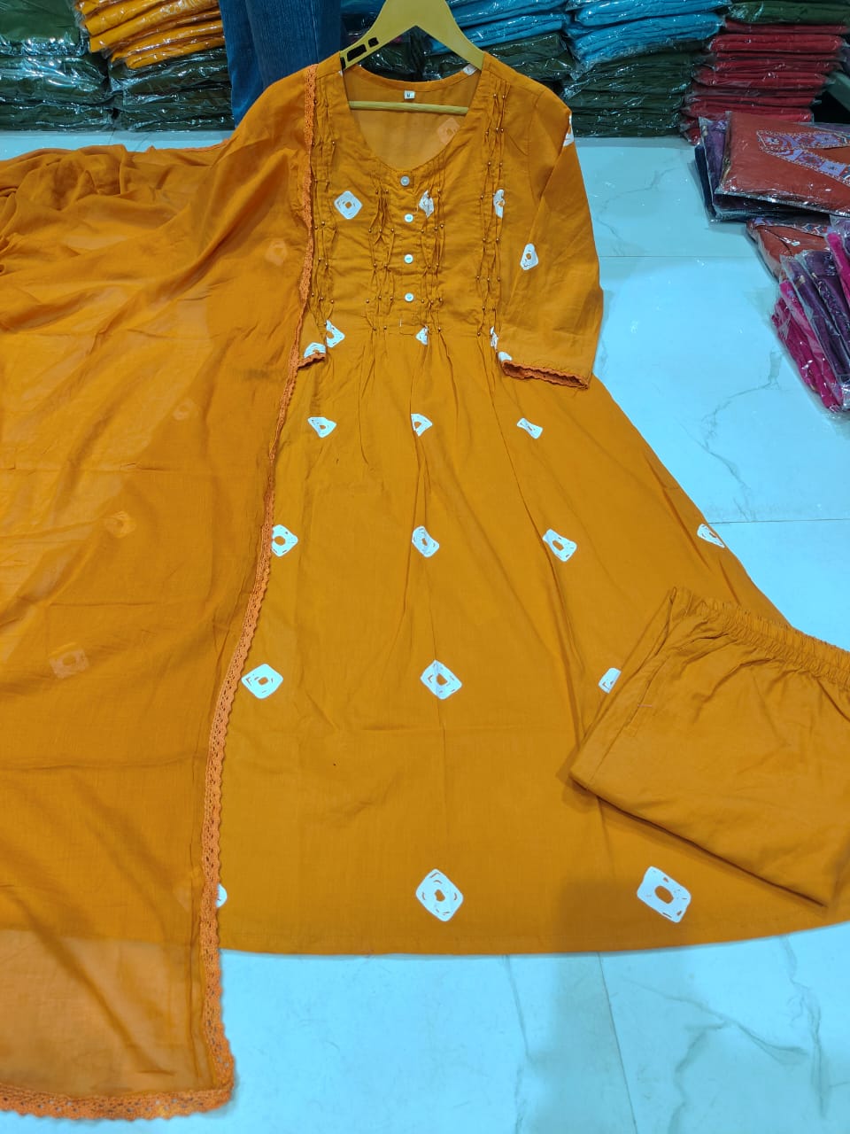 Mustard cotton kurta with subtle embroidery and matching plazo, paired with a soft dupatta. Lightweight, comfortable, and ideal for daily or casual wear.