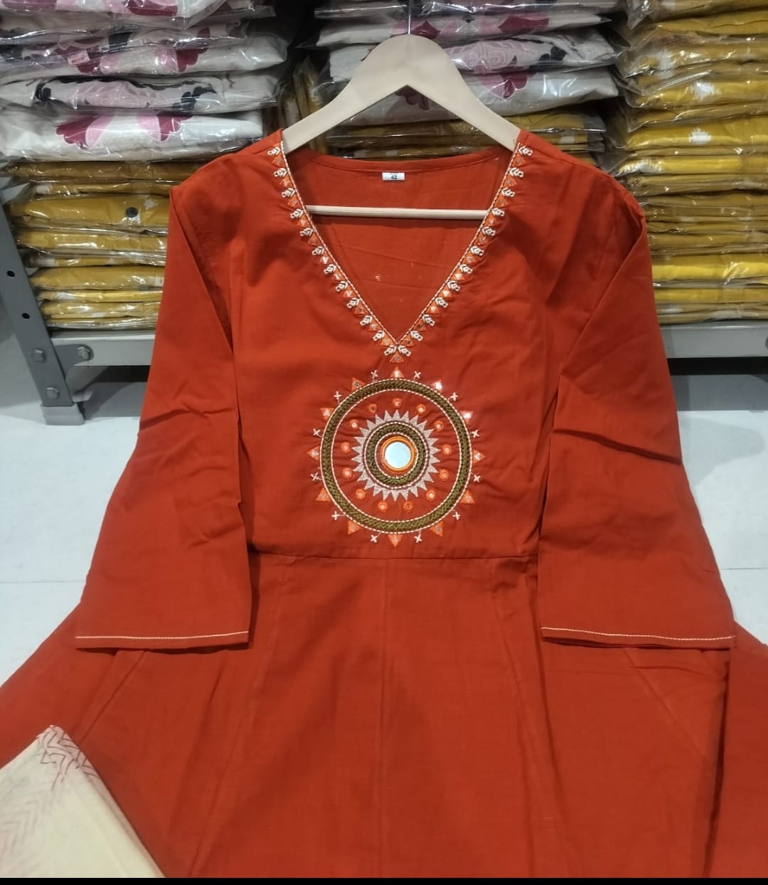 ✨ Product Details: • Fabric: Premium Cotton • Work: Elegant Mirror Work on Yoke • Color: Rust • Kurta Length: 44 inches • Pant Length: 37 inches • Dupatta: Soft Mal Cotton Dupatta • Pocket: One Side Pocket in Kurta • Set Includes: Kurta + Pant + Dupatta